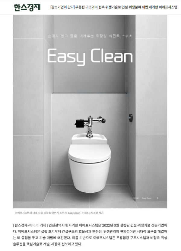 EasyClean은 비접촉 센서 방식을 활용해 위생적이고 편리한 화장실 환경을 제공하는 혁신적인 기술입니다.